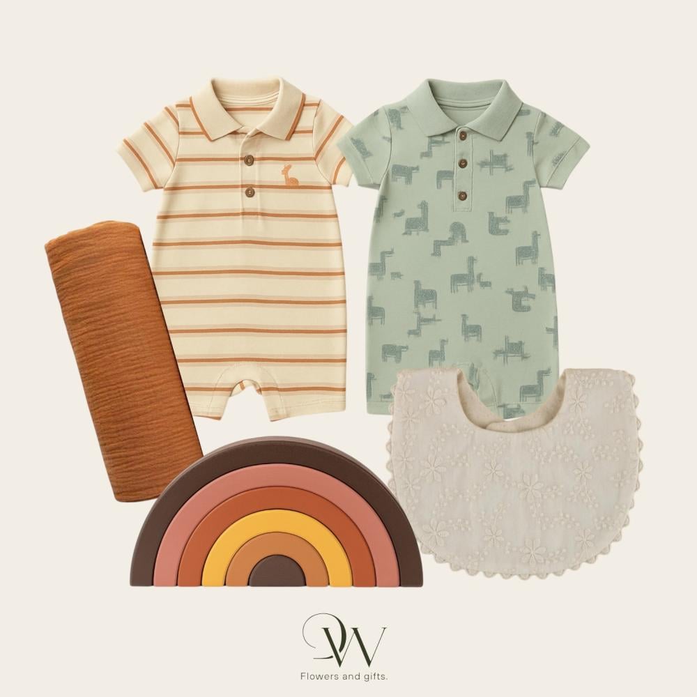 هدية أنيقة ومتكاملة للاحتفال بقدوم المولود الجديد، مصممة بعناية لتجمع بين العملية والفخامة: